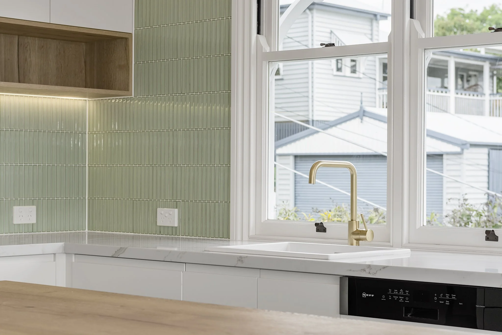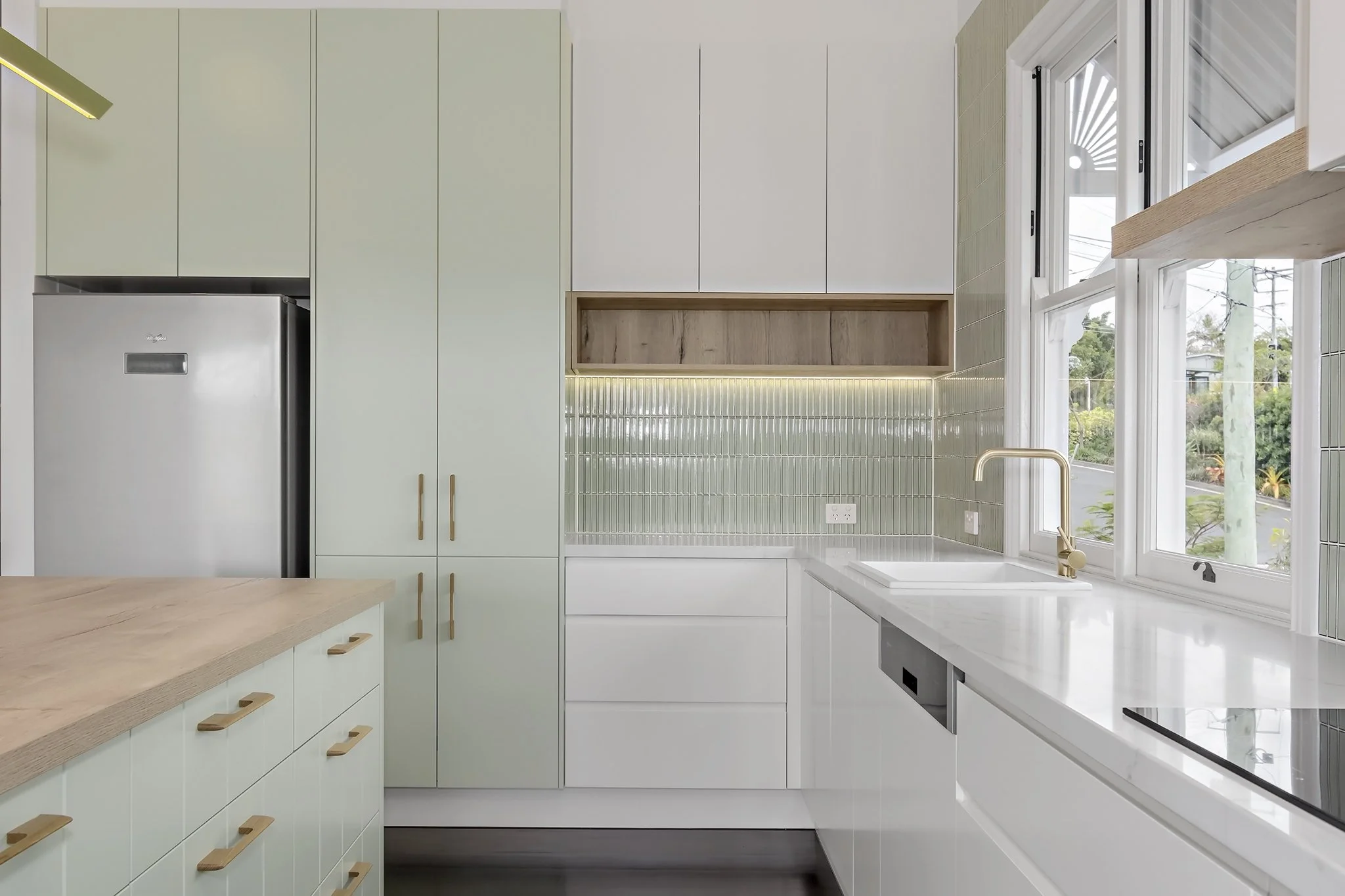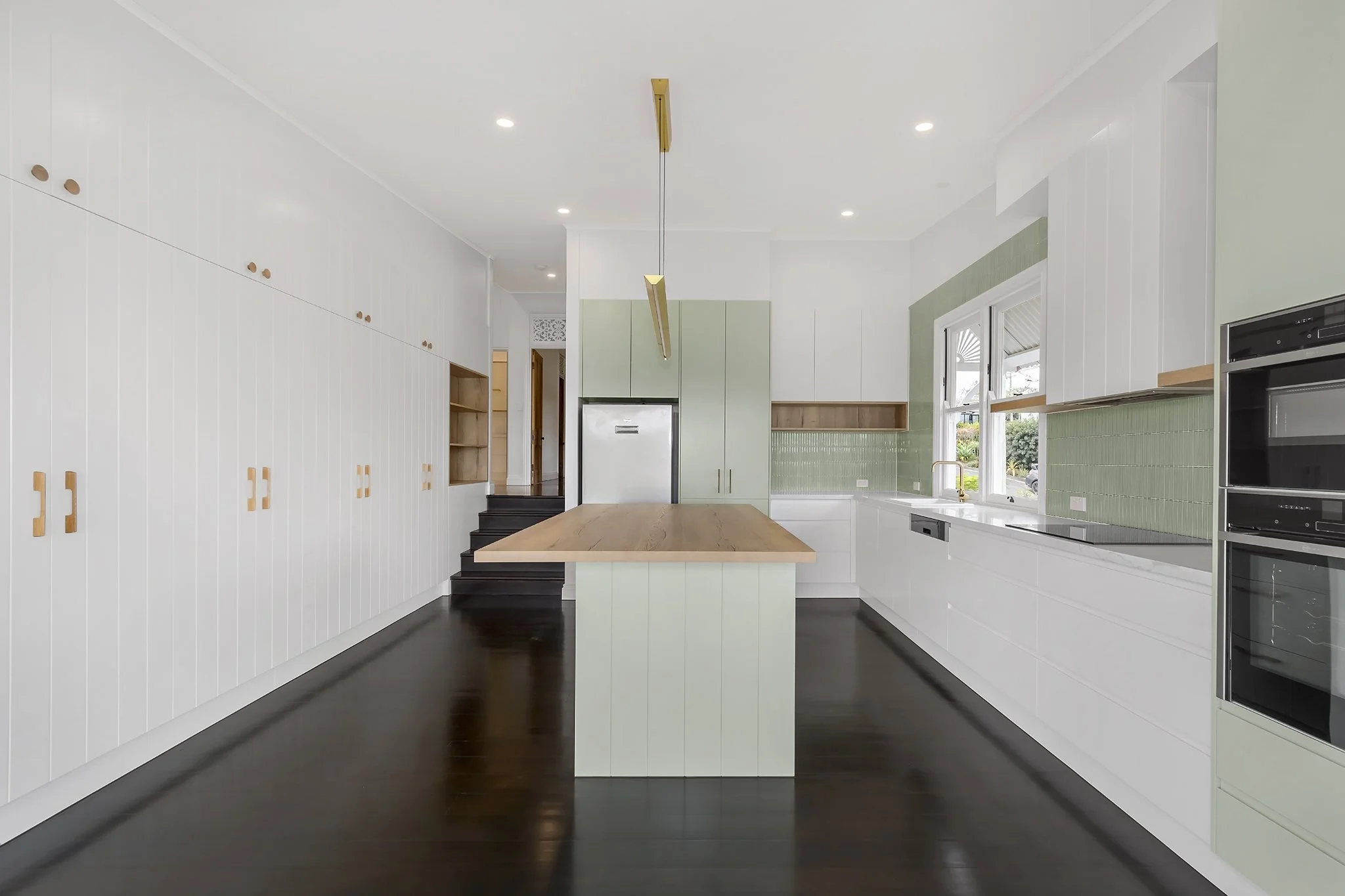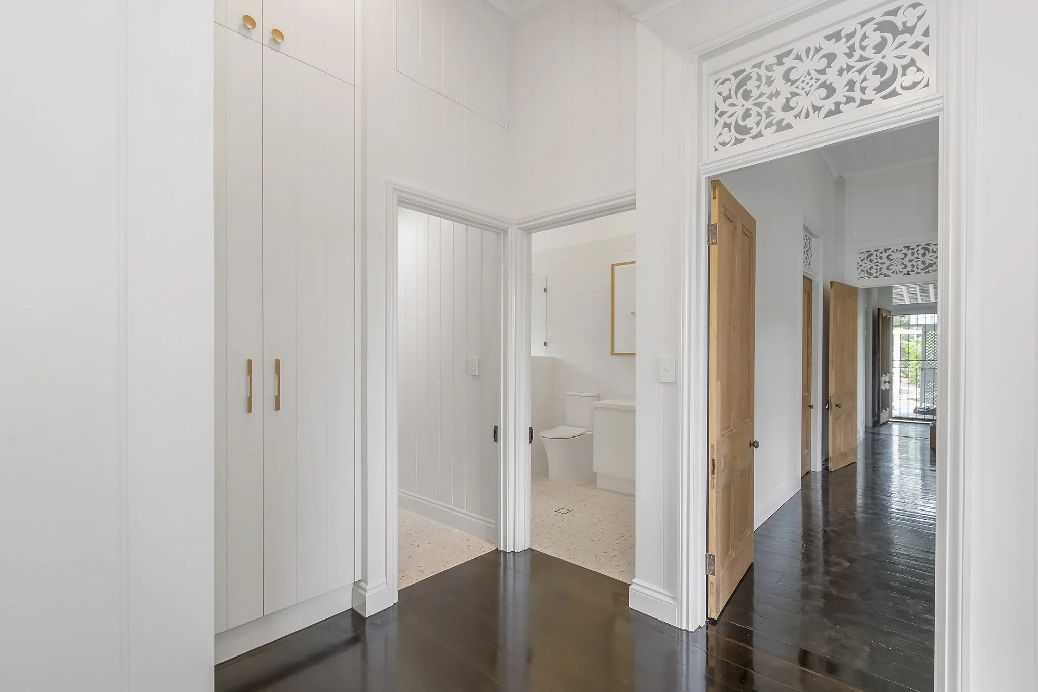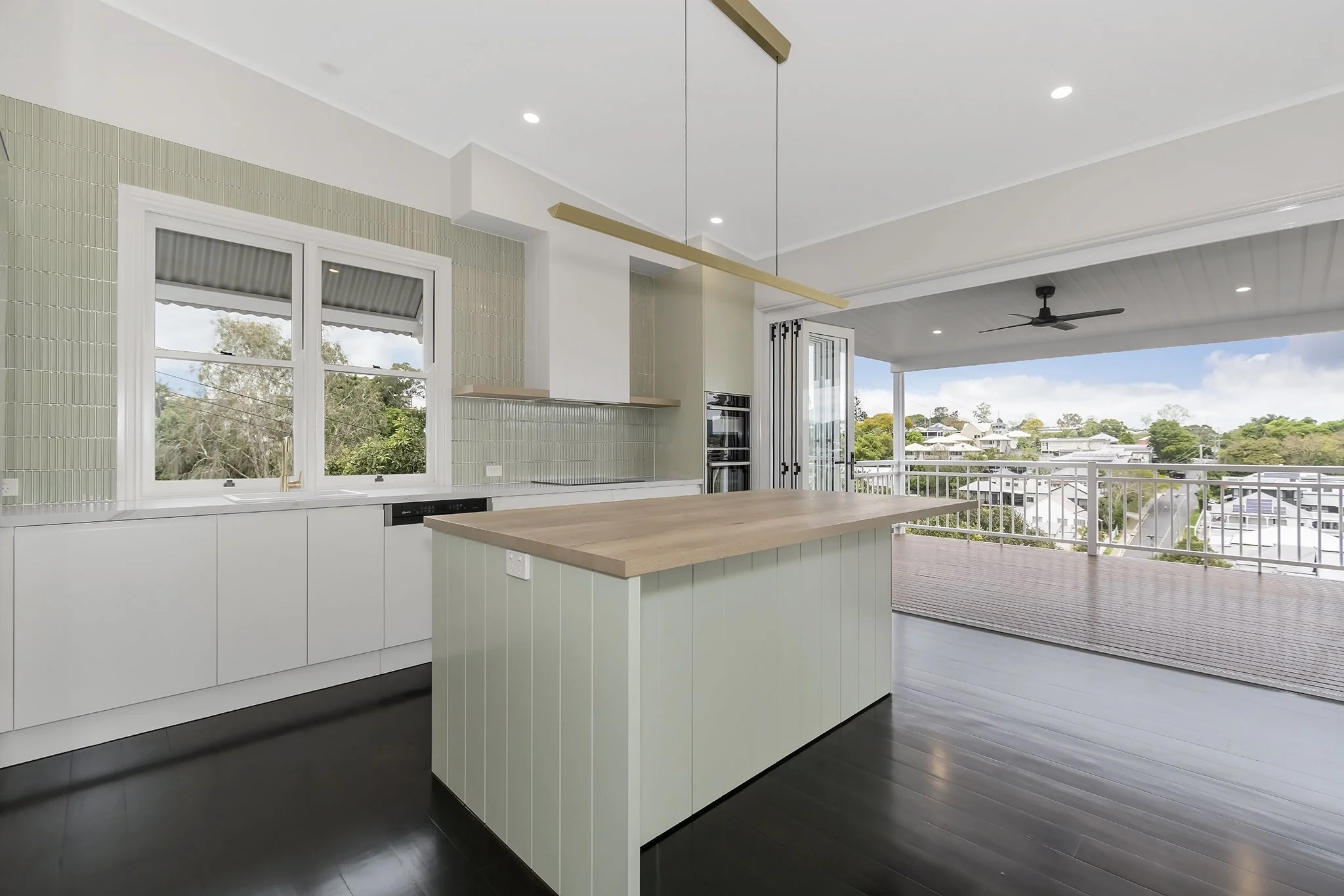The Barnabas project is a stunning showcase of modern Queenslander living. This extensive renovation included a house extension, new kitchen and bathrooms, as well as beautifully crafted decks and a pool surround. The main bathroom’s bright tones and the ensuite’s soothing blue palette add warmth and character. With every detail carefully executed, this revamped home blends classic Queenslander charm with contemporary elegance, offering both style and comfort.