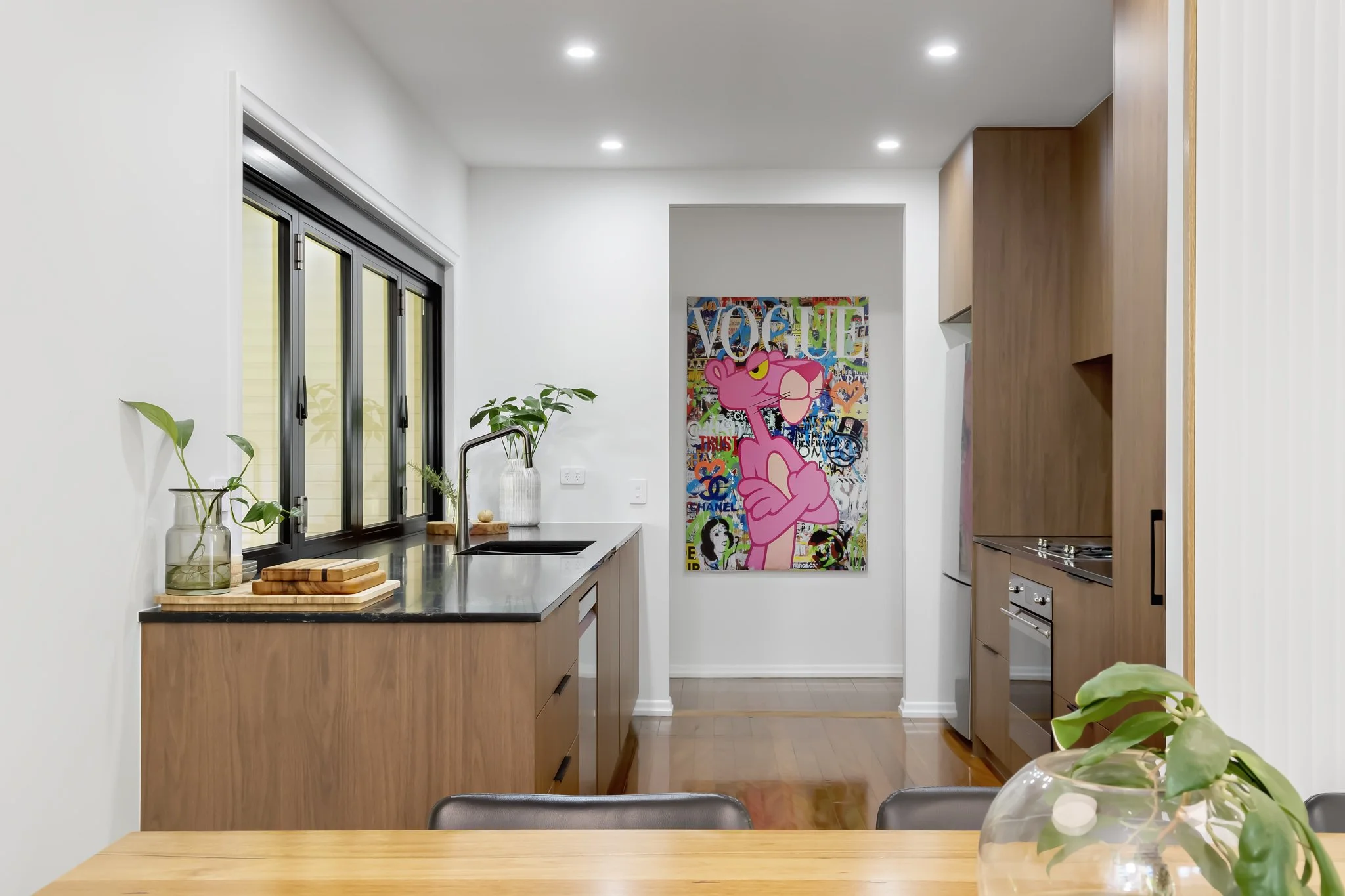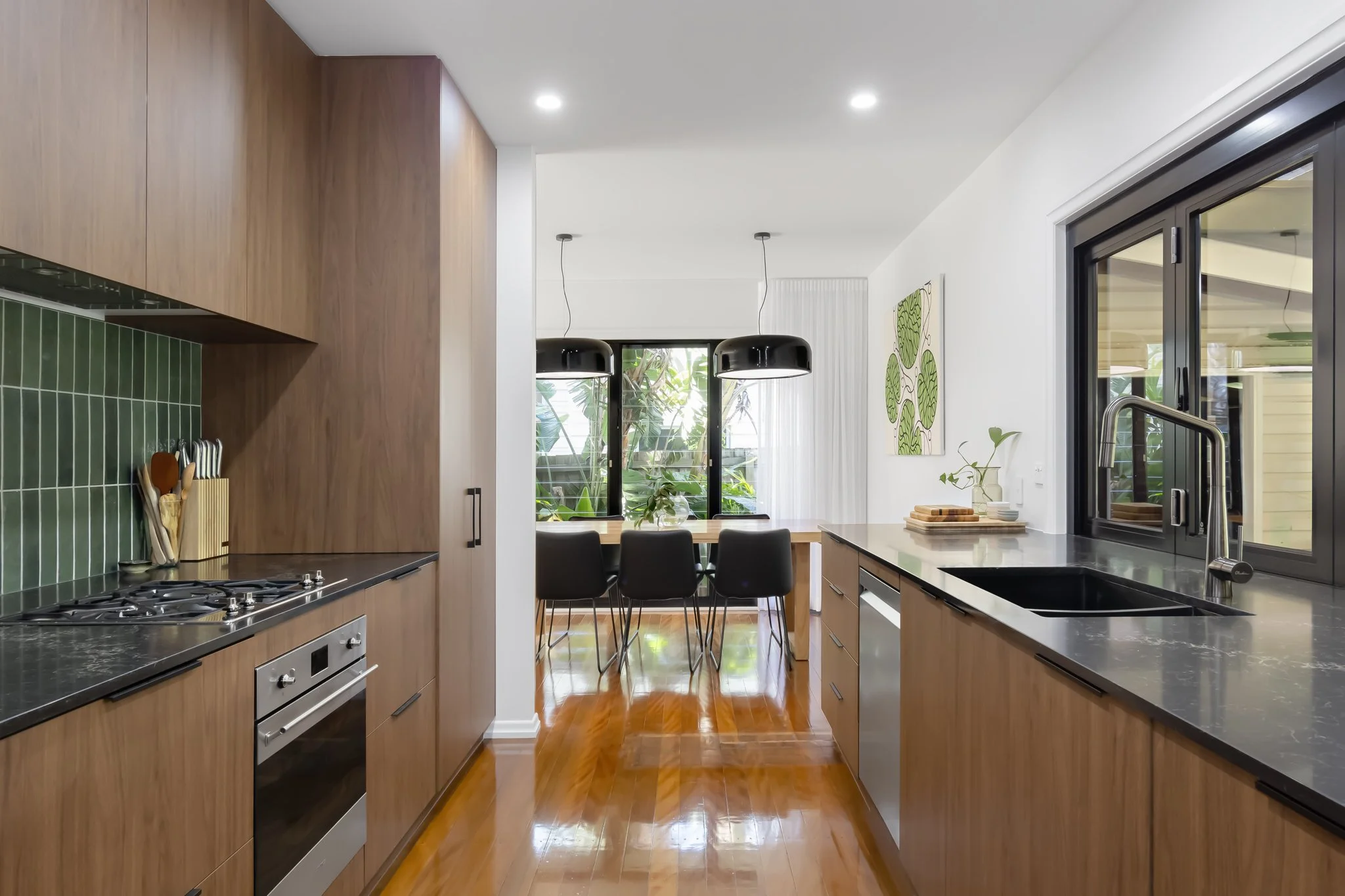 The Chandos project focuses on an elegant kitchen renovation with dark and green tones balanced by ample natural light. The design incorporates a stacking window that seamlessly blends the kitchen with the outdoor patio, creating a flow between indoor and outdoor living. The result is a sophisticated, warm, and inviting space that perfectly complements the home’s character while offering both practicality and style.